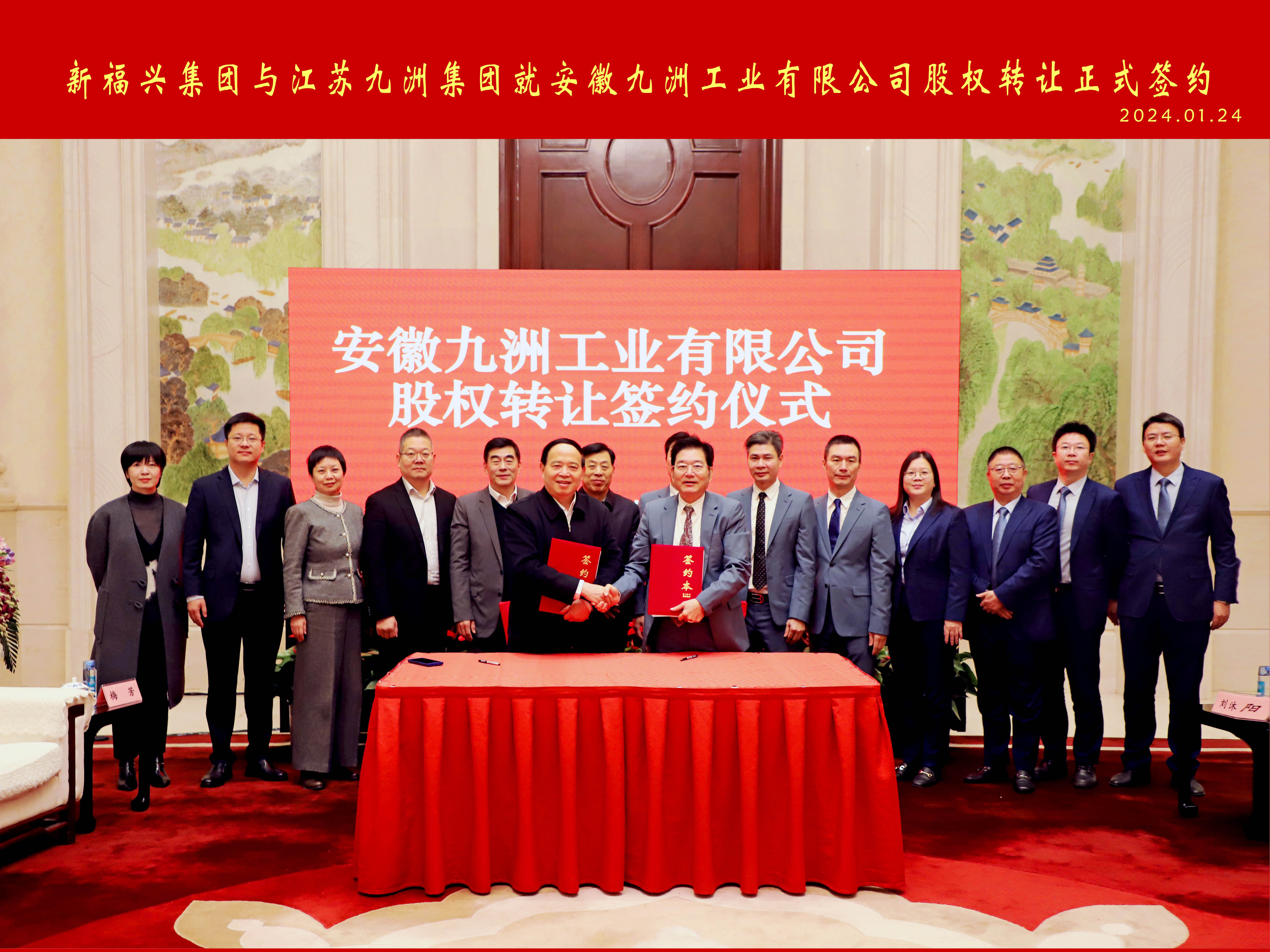 1月24日,新福興集團(tuán)與江蘇九洲集團(tuán)在常州武進(jìn)喜來登大酒店就安徽九洲工業(yè)有限公司股權(quán)轉(zhuǎn)讓正式簽約。自此,廣西新福興硅科技有限公司成為安徽九洲工業(yè)公司唯一股東,新福興集團(tuán)董事長陳全福為法人代表。 -